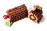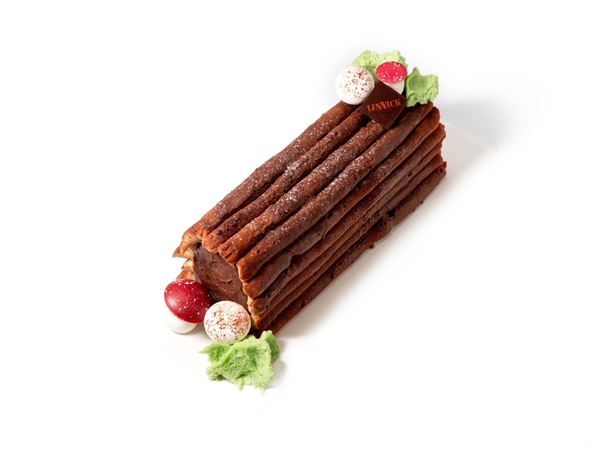 Enjoy our refined bûche, filled with a silky pecan mousseline enriched with pecan praline. At its heart lies a creamy vanilla crémeux, wrapped in a layer of airy muscovado biscuit with a subtle caramel-like flavor.